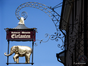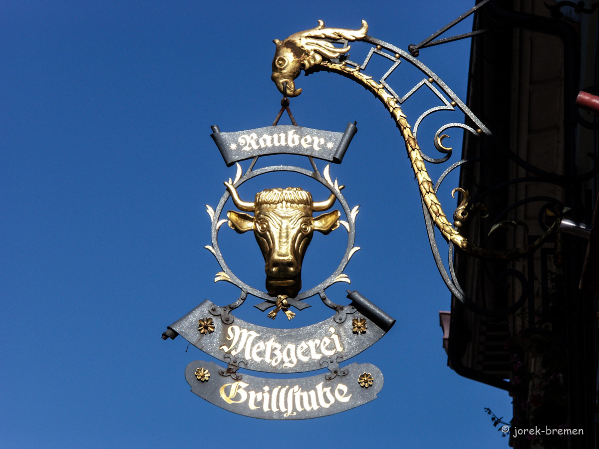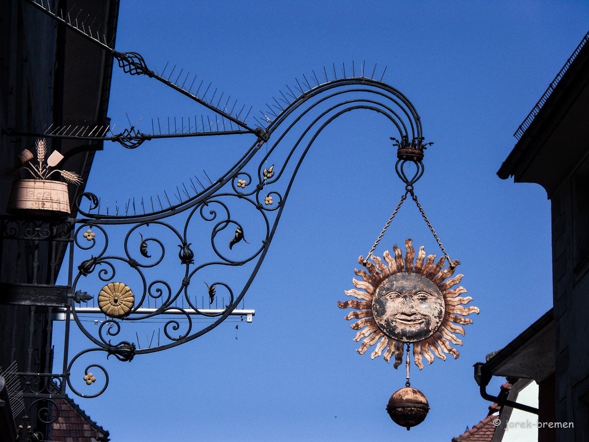 Nasenschilder: Dekorative Hinweise auf das Handwerk oder die gehandelte Ware in diesem Haus.